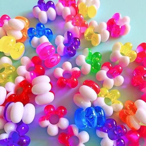 クリアカラー×ホワイト 2トーンポニービーズ ジャンボフラワー