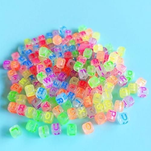 キューブアルファベットビーズ 4.5mm 蓄光×蛍光