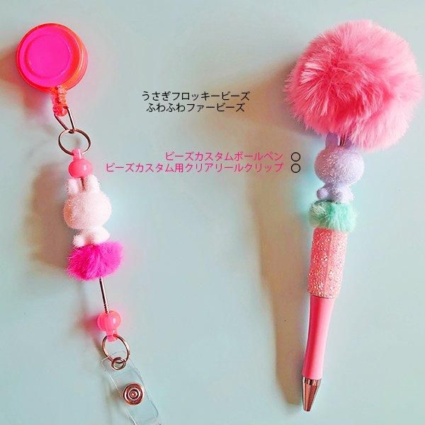 「ビーズカスタムボールペン」「ビーズカスタムキーホルダー金具」「ビーズカスタム用クリアリールクリップ」いずれにも通すことができます