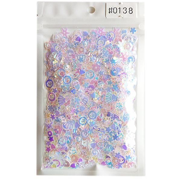 スパンコール 15gパック no.138 バラエティクリア×ホワイト/カップ&ミックスシェイプ