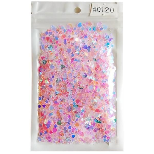 スパンコール 15gパック no.120 キャンディクリアリーピンク/ミックスシェイプ