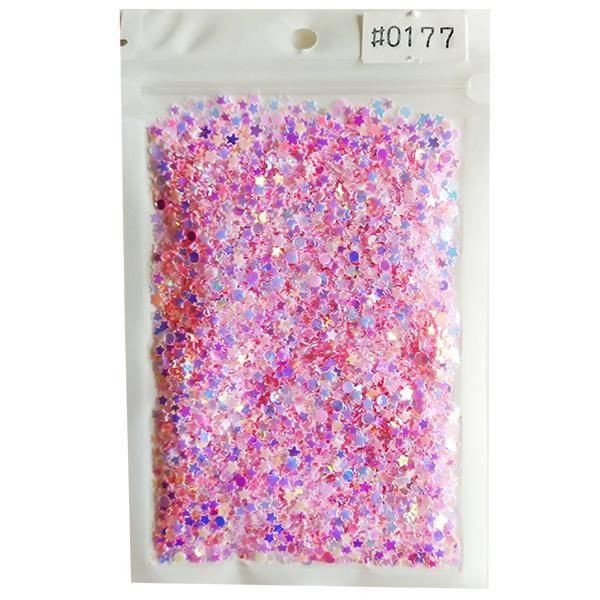 スパンコール 15gパック no.177 ピンク×白×ブルークリスタルホワイト/スターフラワードット