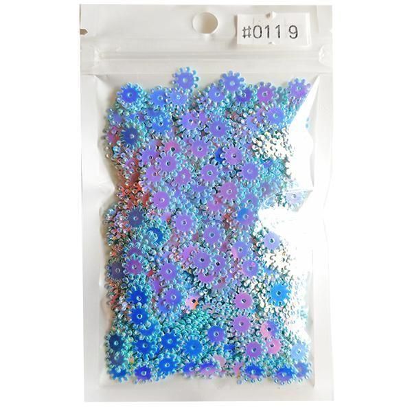スパンコール 20gパック no.119 ハイフラッシュウォーターブルー/エンボスドットフラワー