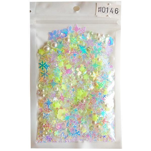 スパンコール 15gパック no.146 ブルークリスタルスパンコール&蓄光トッピングシュガー/グリーン