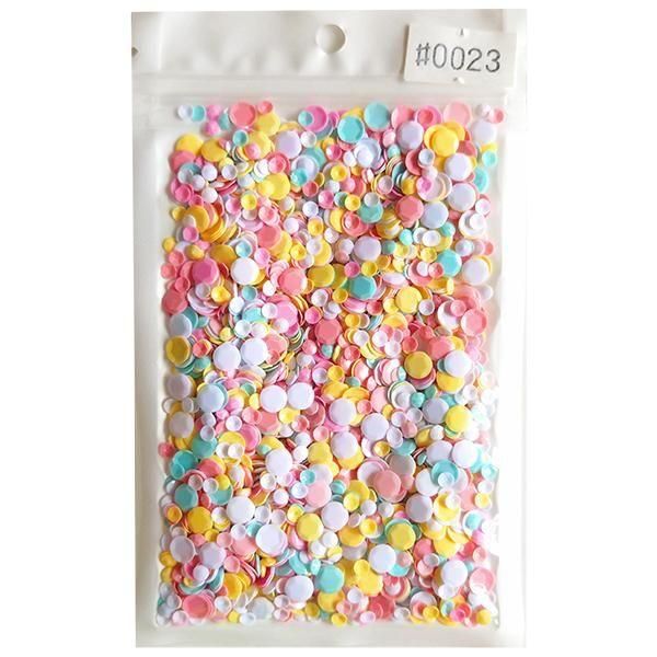 丸い形×パステルカラーなのに、とっても存在感があって、少し入れるだけでとってもポップな雰囲気になります。 光沢タイプですが、パールのような反射はないので、どの角度から見てもそのままの発色です。 直径約3-5mm パッケージサイズ:約80×127mm 15g ※モニターやご利用の端末により実際の色味と異なって見える場合があります。 パッケージにしわや折れがある場合がございます。 一部欠けや汚れや違う種類のスパンコールが混じっている場合がございます。 最近チェックした商品