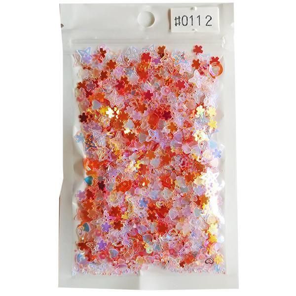 スパンコール 15gパック no.112 フラッシュオレンジ×ブルークリスタル/ミックスシェイプ
