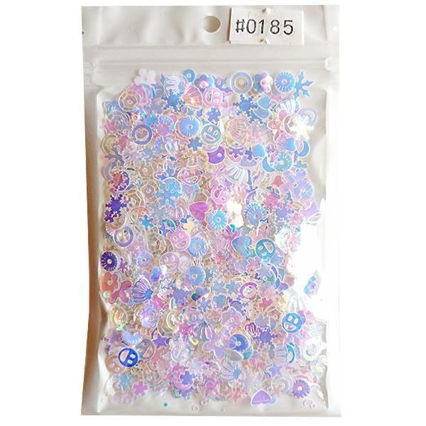 スパンコール 15gパック no.185 バラエティクリア×フロスト×ホワイト/ミックスシェイプ
