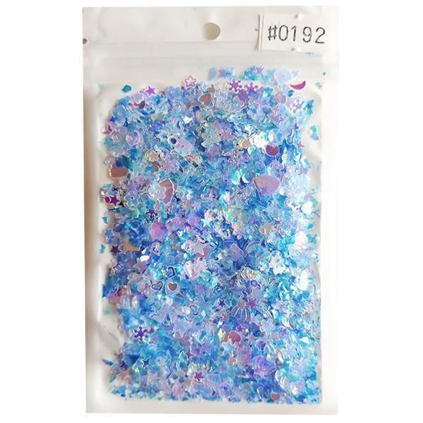 スパンコール 10gパック no.192 ブルー×フラッシュ×ブルークリスタル/ミックスシェイプ&カラードクラッシュホロ