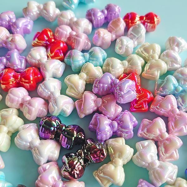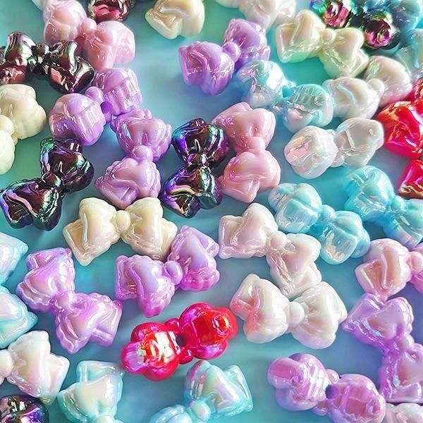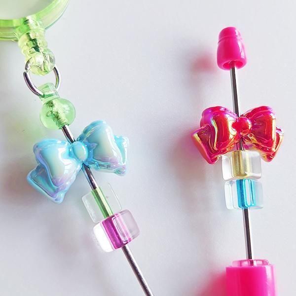 穴のサイズ:約2.8mm ランダムカラー12個入り オーロラ加工のリボン型ビーズ。 ビーズカスタム用のリボン型ビーズの中ではやや小さめのサイズです。 「ビーズカスタムボールペン」「ビーズカスタムキーホルダー金具」どちらにも通すことができます 最近チェックした商品