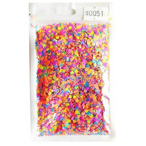 スパンコール 10gパック no.051 ネオンオレンジ×ブルーミックス/マルチドット スーパーライト