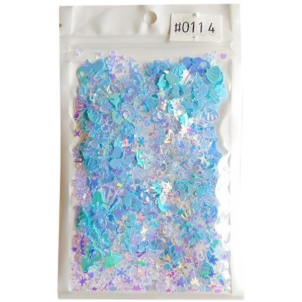 スパンコール 15gパック no.114 ブルー×フラッシュ×ブルークリスタル/ミックスシェイプ