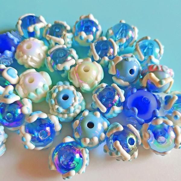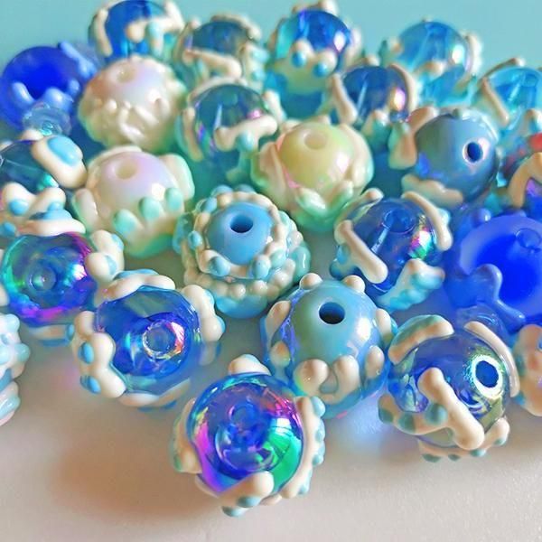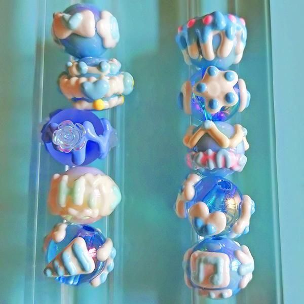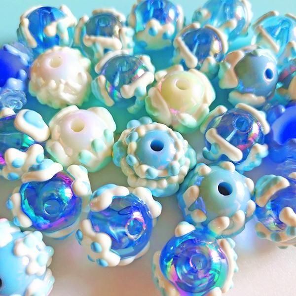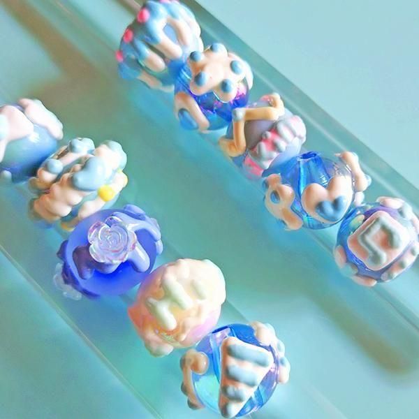 穴のサイズ:約3-3.8mm ランダム5個入り ビーズの表面に立体的なペイントが施されたハンドペイントビーズ。 同系色で揃えられたクリアカラーまたは不透明カラーの組み合わせです。 『推し色ハンドペイントビーズ』シリーズでも色により、柄やベースのビーズのタイプ、割合などが異なり、クリア系のビーズが入っていないカラーもあります。 また、絵柄の種類が少ない色は同じ柄が複数個入っているものもあります。 絵柄の種類・組み合わせは沢山あるため、画像はお届けするビーズの一例です。 ※手描きペイントのため、柄の大きさや位置などは1個ずつ異なり個性があります 柄入りのハンドペイントビーズは全く同じものはほぼ再入荷できないスポット商品です。 「ビーズカスタムボールペン」「ビーズカスタムキーホルダー金具」「ビーズカスタム用クリアリールクリップ」いずれにも通すことができます |