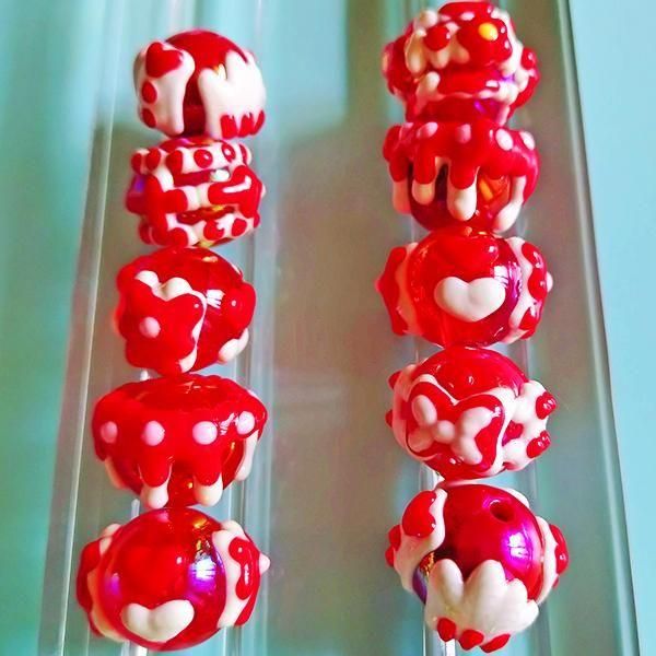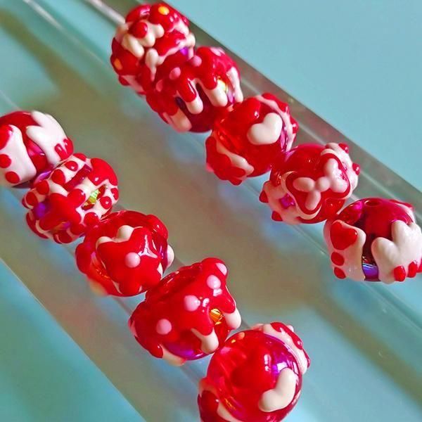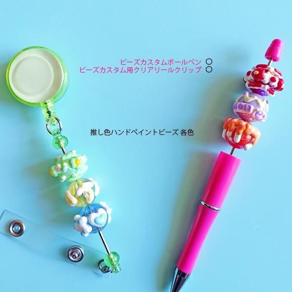 穴のサイズ:約3-3.8mm ランダム5個入り ビーズの表面に立体的なペイントが施されたハンドペイントビーズ。 同系色で揃えられたクリアカラーまたは不透明カラーの組み合わせです。 『推し色ハンドペイントビーズ』シリーズでも色により、柄やベースのビーズのタイプ、割合などが異なり、クリア系のビーズが入っていないカラーもあります。 また、絵柄の種類が少ない色は同じ柄が複数個入っているものもあります。 絵柄の種類・組み合わせは沢山あるため、画像はお届けするビーズの一例です。 ※手描きペイントのため、柄の大きさや位置などは1個ずつ異なり個性があります 柄入りのハンドペイントビーズは全く同じものはほぼ再入荷できないスポット商品です。 「ビーズカスタムボールペン」「ビーズカスタムキーホルダー金具」「ビーズカスタム用クリアリールクリップ」いずれにも通すことができます 最近チェックした商品