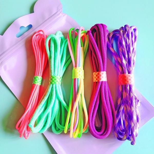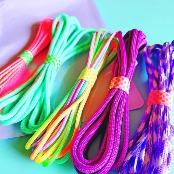 5色のコードとカラフルな金具、大きい穴のビーズがセットになっています。 ---------------------- 【内容】 ■パラコード・マクラメコード 5種類×各2メートル=合計10メートル ※コードは伸縮するため、多少誤差がある場合がございます ■金具 3個 ■ビーズ 5個 ※金具とビーズのカラーはランダムです キットではないので、作り方の説明書等は入っていません。 「パラコード」や「マクラメ」の編み方を検索すると沢山出てきますので、色んなオリジナル作品作りにお使いください。 ---------------------- 今後も発売する予定ではいますが、毎回組み合わせは変わる予定です。 no.003〜no.005のコード計15種類は、すべて違うものになっています。 ※同じ種類もありますが、太さが異なります。 いろいろな太さや素材、質感を組み合わせるとメリハリが出来て楽しい感じになるので、2mm〜4mm、硬めのものと少し柔らかいものなど、そして1種類はナイロン芯は入っていない派手色(今回はどちらも蛍光カラー)のマクラメコードが入っています。 コードの切り口はライター等の火であぶることによりほつれ止めできます。 マクラメコードにはナイロン芯は入っていませんが、糸自体にポリエステルが含まれているため、同様に火であぶることでほつれ止めできます。 |