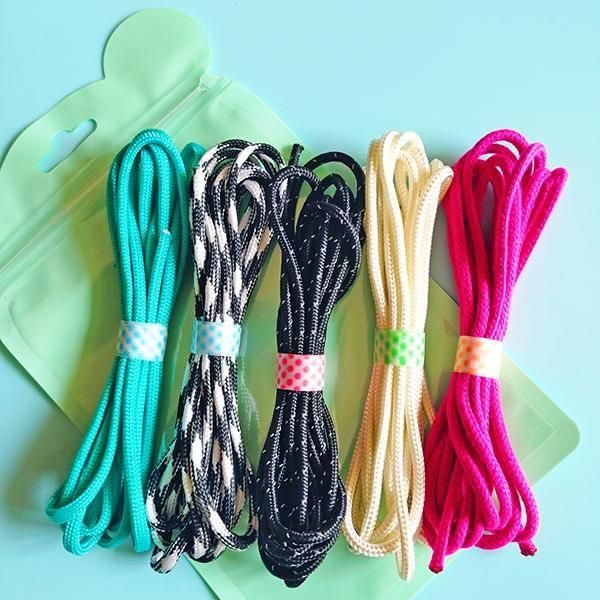 5色のコードとカラフルな金具、大きい穴のビーズがセットになっています。 ---------------------- 【内容】 ■パラコード・マクラメコード 5種類×各2メートル=合計10メートル ※コードは伸縮するため、多少誤差がある場合がございます ■金具 3個 ■ビーズ 5個 ※金具とビーズのカラーはランダムです キットではないので、作り方の説明書等は入っていません。 「パラコード」や「マクラメ」の編み方を検索すると沢山出てきますので、色んなオリジナル作品作りにお使いください。 ---------------------- 今後も発売する予定ではいますが、毎回組み合わせは変わる予定です。 no.003〜no.005のコード計15種類は、すべて違うものになっています。 ※同じ種類もありますが、太さが異なります。 いろいろな太さや素材、質感を組み合わせるとメリハリが出来て楽しい感じになるので、3mm〜4mm、硬めのものと少し柔らかいものなど、そして1種類はナイロン芯は入っていない派手色(今回はどちらも蛍光カラー)のマクラメコードが入っています。 コードの切り口はライター等の火であぶることによりほつれ止めできます。 マクラメコードにはナイロン芯は入っていませんが、糸自体にポリエステルが含まれているため、同様に火であぶることでほつれ止めできます。 |