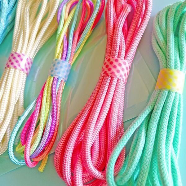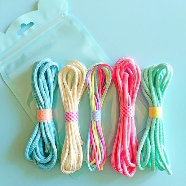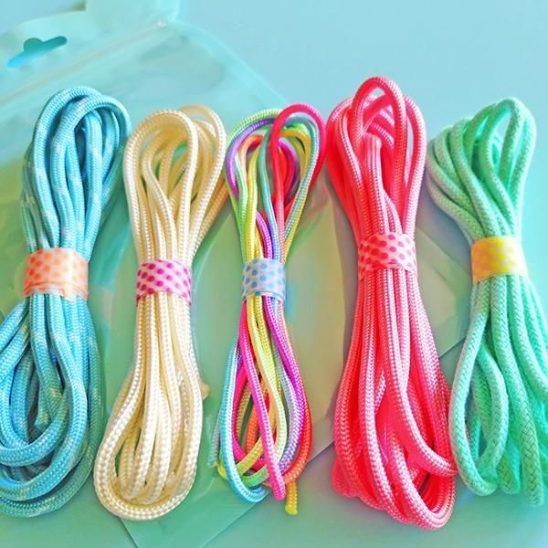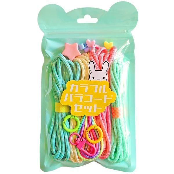 5色のコードとカラフルな金具、大きい穴のビーズがセットになっています。 ---------------------- 【内容】 ■パラコード・マクラメコード 5種類×各2メートル=合計10メートル ※コードは伸縮するため、多少誤差がある場合がございます ■金具 3個 ■ビーズ 5個 ※金具とビーズのカラーはランダムです キットではないので、作り方の説明書等は入っていません。 「パラコード」や「マクラメ」の編み方を検索すると沢山出てきますので、色んなオリジナル作品作りにお使いください。 ---------------------- 今後も発売する予定ではいますが、毎回組み合わせは変わる予定です。 no.006〜no.008は、共通してレインボーカラーのパラコードが入っていますが、それ以外はすべて違うものとなり重複していません。 (レインボーカラーのパラコードは、no.006とno.008が3mm、no.007が2mm) いろいろな太さや素材、質感を組み合わせるとメリハリが出来て楽しい感じになるので、2mm〜5mm程度、硬めのものと少し柔らかいものなど、そして1種類はナイロン芯は入っていない派手色のマクラメコードが入っています。 コードの切り口はライター等の火であぶることによりほつれ止めできます。 マクラメコードにはナイロン芯は入っていませんが、糸自体にポリエステルが含まれているため、同様に火であぶることでほつれ止めできます。 最近チェックした商品