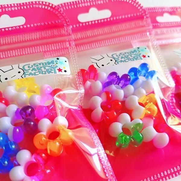 クリアカラー×ホワイト 2トーンポニービーズ ジャンボフラワー
