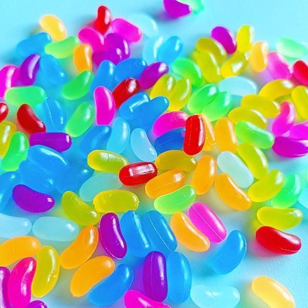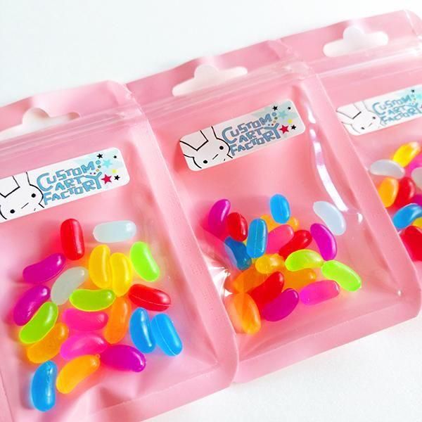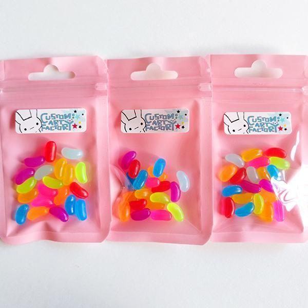 蛍光カラー×半透明の鮮やかなカラーのゼリービーンズパーツ。