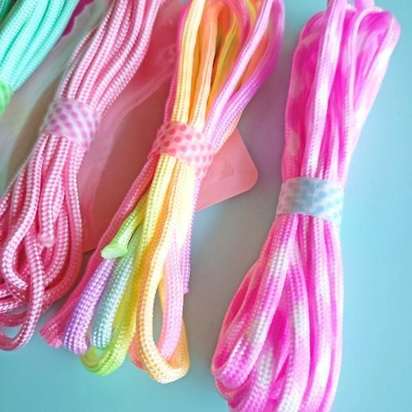 5色のコードとカラフルな金具、大きい穴のビーズがセットになっています。 ---------------------- 【内容】 ■パラコード・マクラメコード 5種類×各2メートル=合計10メートル ※コードは伸縮するため、多少誤差がある場合がございます ■金具 3個 ■ビーズ 11個 ※金具とビーズのカラーはランダムです キットではないので、作り方の説明書等は入っていません。 「パラコード」や「マクラメ」の編み方を検索すると沢山出てきますので、色んなオリジナル作品作りにお使いください。 ---------------------- 今後も発売する予定ではいますが、毎回組み合わせは変わる予定です。 no.009〜no.011は、すべて違うパラコードが入っており重複していません。 いろいろな太さや素材、質感を組み合わせるとメリハリが出来て楽しい感じになるので、3mm〜5mm程度、硬めのものと少し柔らかいものなど、そして1種類はナイロン芯は入っていない派手色のマクラメコードが入っています。 コードの切り口はライター等の火であぶることによりほつれ止めできます。 マクラメコードにはナイロン芯は入っていませんが、糸自体にポリエステルが含まれているため、同様に火であぶることでほつれ止めできます。 |
