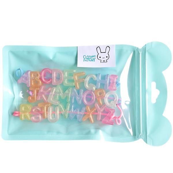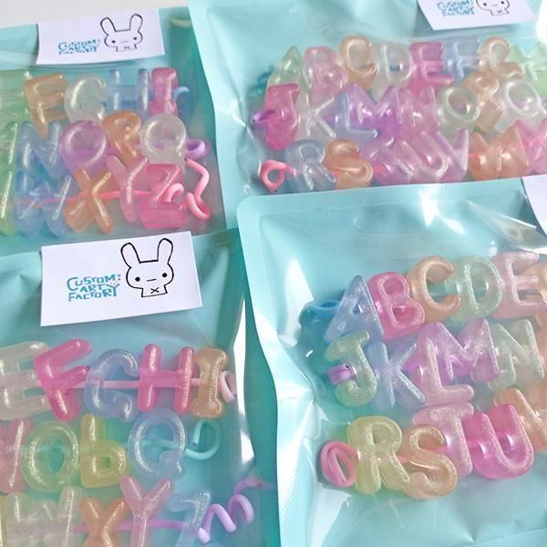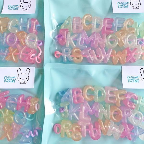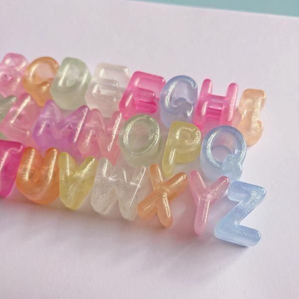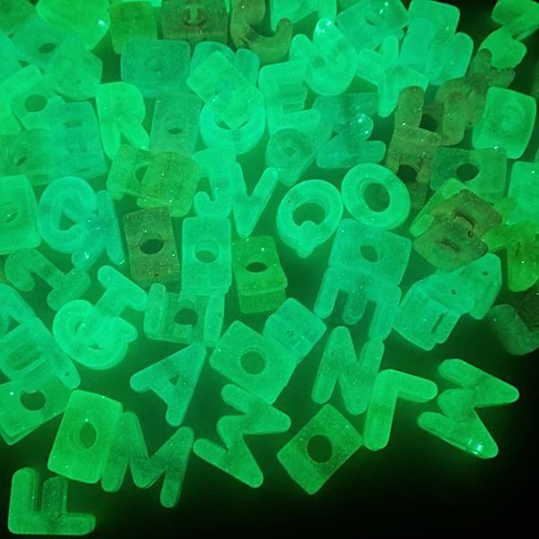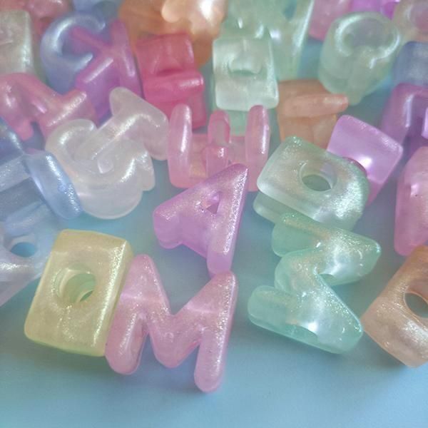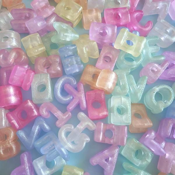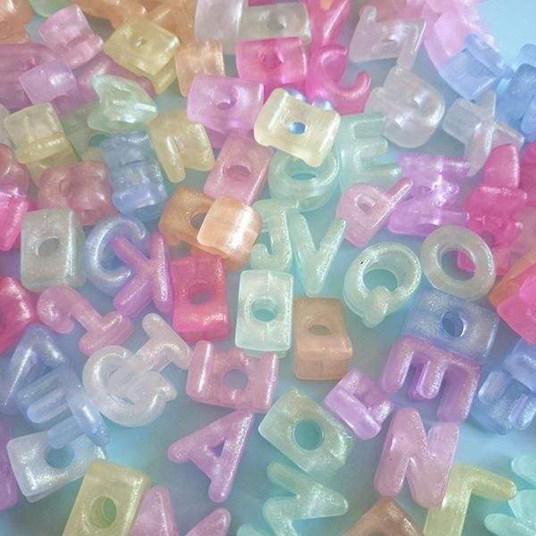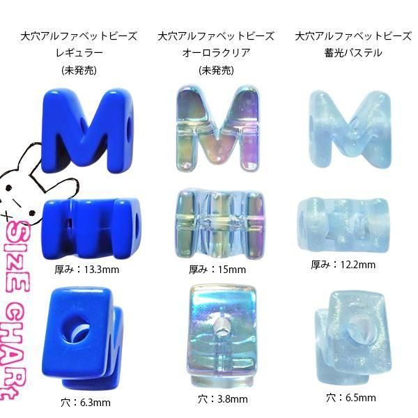 大穴アルファベットビーズ 蓄光パステル