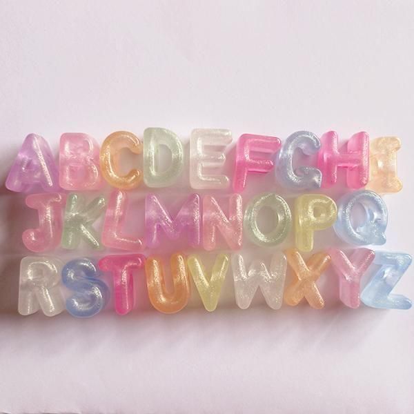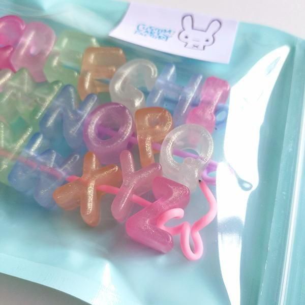 光を蓄えて暗闇で光る蓄光素材のビーズです 細かいラメが入ったパステル系の半透明カラーです サイズ:幅約9.5-18.5mm×高さ約29mm(文字により幅は異なります) 穴のサイズ:約6.5mm A〜Zの26文字×各1個=計26個 アルファベットは26文字すべてが入っていますが、色の組み合わせはランダムです 最近チェックした商品
