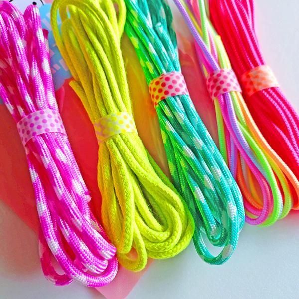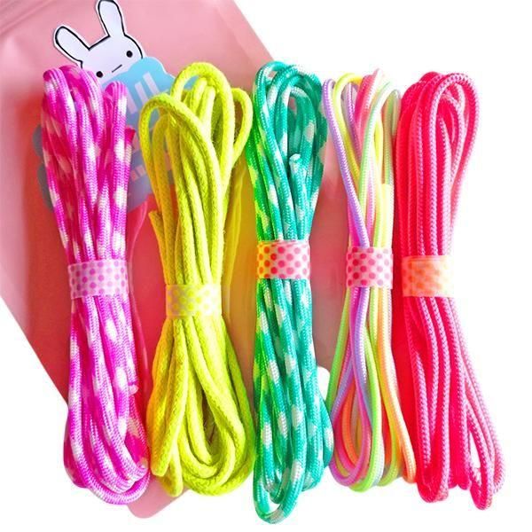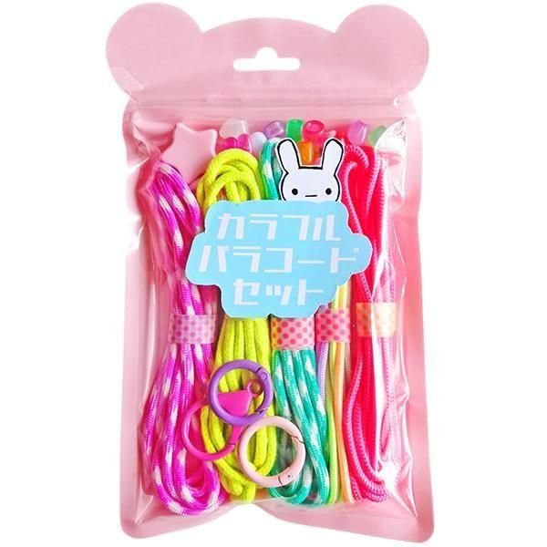 5色のコードとカラフルな金具、大きい穴のビーズがセットになっています。 ---------------------- 【内容】 ■パラコード・マクラメコード 5種類×各2メートル=合計10メートル ※コードは伸縮するため、多少誤差がある場合がございます ■金具 3個 ■ビーズ 11個 ※金具とビーズのカラーはランダムです キットではないので、作り方の説明書等は入っていません。 「パラコード」や「マクラメ」の編み方を検索すると沢山出てきますので、色んなオリジナル作品作りにお使いください。 ---------------------- 今後も発売する予定ではいますが、毎回組み合わせは変わる予定です。 no.012〜no.014は、すべて違うパラコードが入っており重複していません。 いろいろな太さや素材、質感を組み合わせるとメリハリが出来て楽しい感じになるので、3mm〜5mm程度、硬めのものと少し柔らかいものなど、そして1種類はナイロン芯は入っていない派手色のマクラメコードが入っています。 コードの切り口はライター等の火であぶることによりほつれ止めできます。 マクラメコードにはナイロン芯は入っていませんが、糸自体にポリエステルが含まれているため、同様に火であぶることでほつれ止めできます。 最近チェックした商品