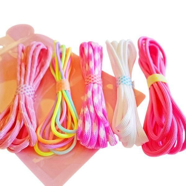 5色のコードとカラフルな金具、大きい穴のビーズがセットになっています。 ---------------------- 【内容】 ■パラコード・マクラメコード 5種類×各2メートル=合計10メートル ※コードは伸縮するため、多少誤差がある場合がございます ■金具 3個 ■ビーズ 11個 ※金具とビーズのカラーはランダムです キットではないので、作り方の説明書等は入っていません。 「パラコード」や「マクラメ」の編み方を検索すると沢山出てきますので、色んなオリジナル作品作りにお使いください。 ---------------------- 今後も発売する予定ではいますが、毎回組み合わせは変わる予定です。 同時発売のno.015とno.016は、新色の白は共通、それ以外はすべて違うパラコードが入っています。 いろいろな太さや素材、質感を組み合わせるとメリハリが出来て楽しい感じになるので、3mm〜5mm程度、硬めのものと少し柔らかいものなど色々なタイプのパラコードが入っています。 コードの切り口はライター等の火であぶることによりほつれ止めできます。 マクラメコードにはナイロン芯は入っていませんが、糸自体にポリエステルが含まれているため、同様に火であぶることでほつれ止めできます。 |