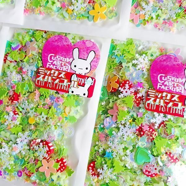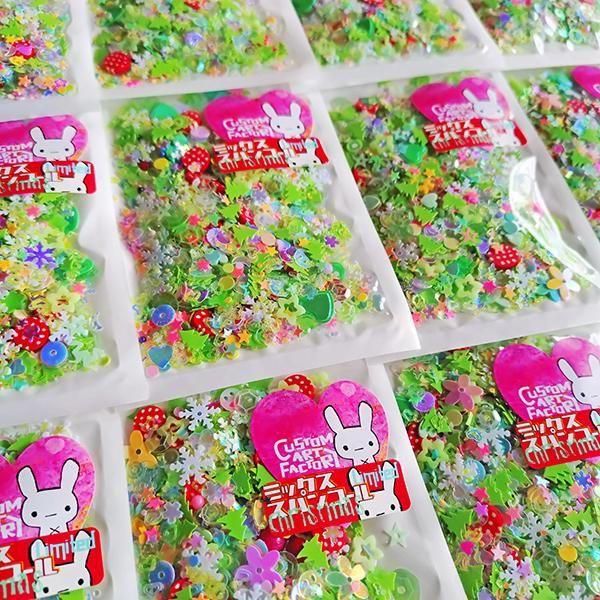 Custom Art Factoryオリジナルミックスのスパンコールです。 『きまぐれミックス』は、レアなスパンコールや少量しかないものなども含め、バランスを見ながらどんどんイロイロ加えて作っていますので、同じものが再現できません。 超数量限定、再入荷なしの限定スパンコールミックス。 お気に入りのに出会えた時はすぐゲットしてくださいね。 ※スパンコールの他に粘土製のフェイクトッピングシュガーやチョコスプレー、プラスチック製のガムボールなどが入っているものもあります。 約15g入り パッケージサイズ:約80×127mm モニターやご利用の端末により実際の色味と異なって見える場合があります。 |