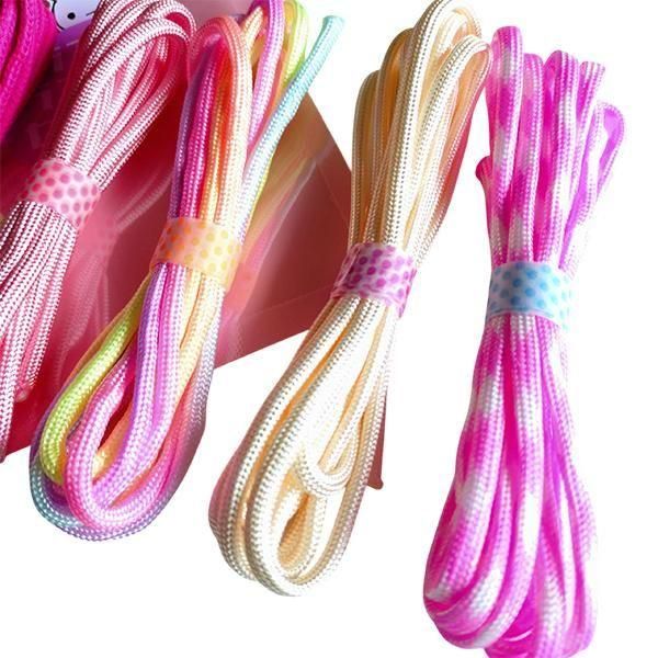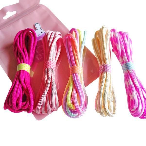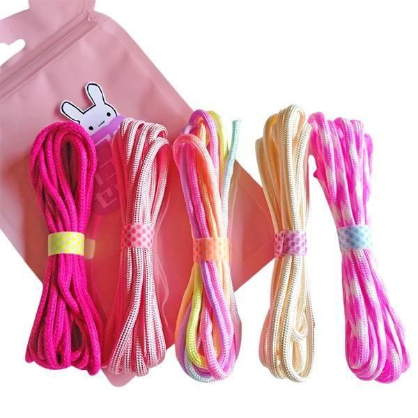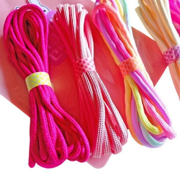 5色のコードとカラフルな金具、大きい穴のビーズがセットになっています。 ---------------------- 【内容】 ■パラコード・マクラメコード 5種類×各2メートル=合計10メートル ※コードは伸縮するため、多少誤差がある場合がございます ■金具 3個 ■ビーズ 12個 ※金具とビーズのカラーはランダムです キットではないので、作り方の説明書等は入っていません。 「パラコード」や「マクラメ」の編み方を検索すると沢山出てきますので、色んなオリジナル作品作りにお使いください。 ---------------------- 今後も発売する予定ではいますが、毎回組み合わせは変わる予定です。 同時発売のno.019とno.020は、すべて違うパラコードが入っており重複していません。 いろいろな太さや素材、質感を組み合わせるとメリハリが出来て楽しい感じになるので、4mm〜5mm程度、硬めのものと少し柔らかいものなど、そして1種類はナイロン芯は入っていない派手色のマクラメコードが入っています。 コードの切り口はライター等の火であぶることによりほつれ止めできます。 マクラメコードにはナイロン芯は入っていませんが、糸自体にポリエステルが含まれているため、同様に火であぶることでほつれ止めできます。 |