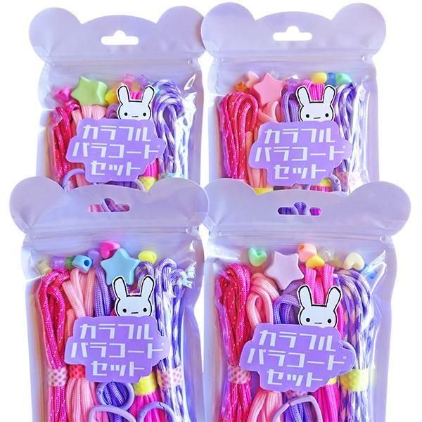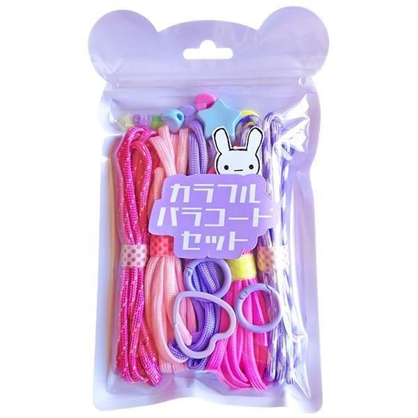 5色のコードとカラフルな金具、大きい穴のビーズがセットになっています。 ---------------------- 【内容】 ■パラコード・マクラメコード 5種類×各2メートル=合計10メートル ※コードは伸縮するため、多少誤差がある場合がございます ■金具 3個 ■ビーズ 9個 ※金具とビーズのカラーはランダムです キットではないので、作り方の説明書等は入っていません。 「パラコード」や「マクラメ」の編み方を検索すると沢山出てきますので、色んなオリジナル作品作りにお使いください。 ---------------------- 今後も発売する予定ではいますが、毎回組み合わせは変わる予定です。 同時発売のno.019とno.020は、すべて違うパラコードが入っており重複していません。 いろいろな太さや素材、質感を組み合わせるとメリハリが出来て楽しい感じになるので、4mm〜5mm程度、硬めのものと少し柔らかいものなど、いろいろなタイプのパラコードが入っています。 コードの切り口はライター等の火であぶることによりほつれ止めできます。 マクラメコードにはナイロン芯は入っていませんが、糸自体にポリエステルが含まれているため、同様に火であぶることでほつれ止めできます。 |